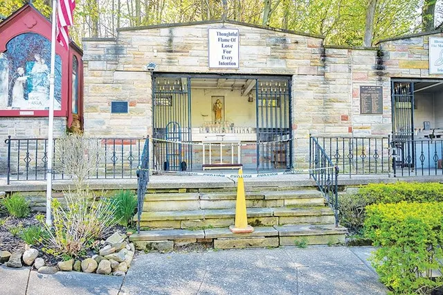 In 1926, a replica of that shrine, carved from imported Italian marble, was erected within a surrounding grotto set back on a wooded site in Euclid. Beneath a stunning statue of Mary, water flows over a piece of stone brought back from the original shrine.
